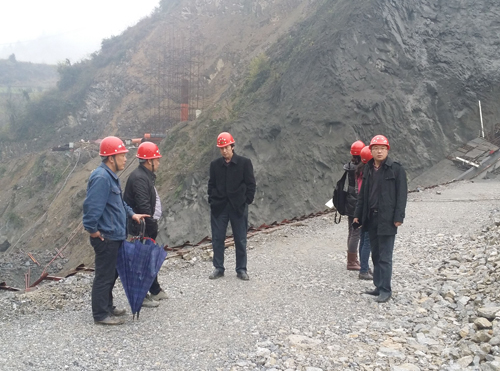 2015年3月17日,在蒙蒙细雨中,公司总工程师石裕友带领公司内审组来到木桥河水库项目部检查工作。