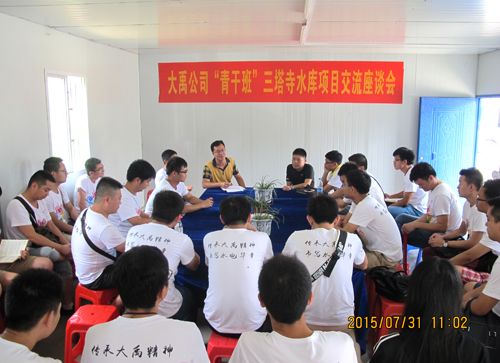 上午,青干班学员与三塔寺水库项目部进行了交流座谈,项目部副经理郭友刚向学员们介绍了三塔寺水库工程建设的基本情况、主体工程完成情况、工程主要特点等,并与学员们深入交流了工程中遇到的具体困难和解决方法。随后郭友刚还带领青干班学员来到施工现场,先后实地参观了工地现场、溢洪道、导流洞、坝基开挖等,并就导流洞的施等方面着重进行了学习观摩。