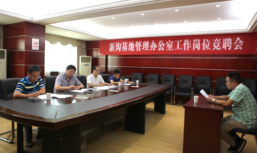 8月3日下午,新沟基地管理办公室工作岗位竞聘会在八楼会议室举行。公司总经理助理兼工会主席闵国武及机关相关部门负责人组成考评组进行提问和测评。