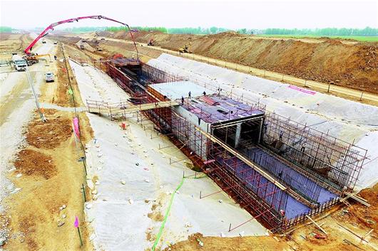 湖北日报讯 14日,鄂北水资源配置工程老河口暗涵三标段,施工人员正在浇筑暗涵混凝土。从上月中旬开始,工程全线进入暗涵施工高潮,建设者们克服膨胀土遇水易造成滑坡等困难,昼夜施工,已开挖土方70余万立方米,完成近200米长暗涵混凝土浇筑任务。工程竣工后,鄂北地区沿线482万人将告别干旱缺水历史,喝上“丹江水”。 (记者 周立新 李溪 视界网 王双全 刘兵 摄)