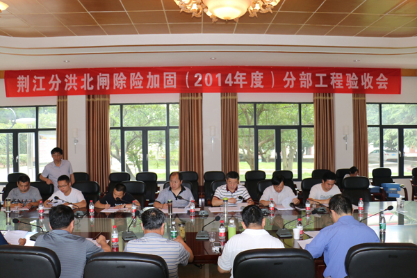 荆江分洪北闸除险加固工程共计分为九个分部工程,2015年5月9日开工,2016年3月18日完成砼防渗墙、闸室加固、下游护坦加固、缺陷处理、金属结构、房屋维修、安全监测等7个分部工程建设内容,2016年3月27日完成上述6个分部工程验收,2016年6月29日完成下游护岸工程、配电与综合自动化两个分部工程建设内容。本次验收为该工程的第二次验收。