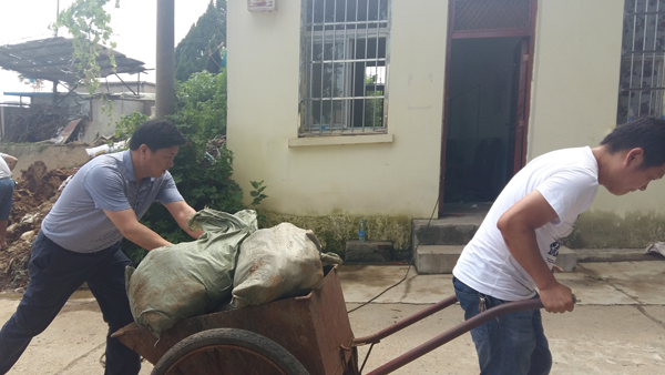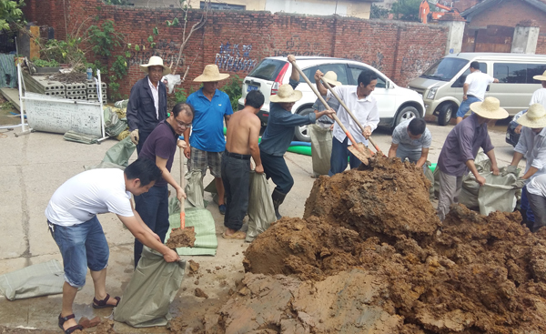 发现险情后,公司总经理助理、工会主席闵国武率行政部负责人王占斌火速赶赴新沟基地,调来抢险物资及设备,立即组织人员抢险,并不顾炎热,毅然加入抢险队伍之中,并肩作战。科学在前,指挥在后,抢险现场慌而不乱、紧张有序。抢险队伍之中,有上阵父子兵,有六七十岁的老人,不顾身体状况,使尽全力往上拽沙袋;也有附近居民主动送上棉絮堵住溃口;也有不分昼夜、随叫随到的电工;更有不顾河水里的血吸虫,毅然决然光脚下水摸清漏洞的水利家属……“新沟基地是我们从小呆到大的家园,保卫家园人人有责!”抢险完毕,周庭建抹了一把额头的汗水说。