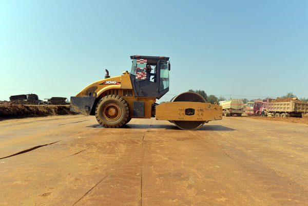 9月底,记者来到倒虹吸工程施工现场,但见一边十个工人在搭钢架、做模板,做混凝土浇筑前准备,一边已经完成混凝土浇筑,正在土方回填作业。一台大型碾压机正在碾压平面,一台小碾压机碾压细节处,一台自卸车将土运来后,一台推土机把稍微大一点的土块全部压碎。旁站监督质量的工地监理张福明说:土方回填中挖方、填方都很讲究,要求粘性土,土块大了不行,要先粉碎再碾压,要求含水量在24.4%,底层、顶层质量都严格把关,从上到下分23层碾压,每层毛高40公分,压实后30公分,像复合地板一样平整。