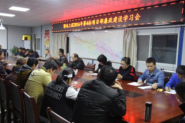 按照鄂北局党委关于进一步加强参建单位党风廉政建设工作的要求,为开展好2017年廉政建设工作,鄂北地区水资源配置工程2016年第4标项目部采用宣传栏、宣传标语、交流谈话等多种形式进行党风廉政建设工作宣传,确保项目“工程优质、干部廉洁”的目标实现。3月21日晚,项目部组织全体管理人员及新进员工召开了廉政建设学习交流会,对新进员工进行廉政教育,进一步落实主体责任和强化监督责任。