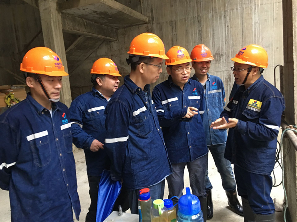 余中平一行进隧洞、下厂房,全面了解施工进展情况,并与在场的施工人员一一握手致意。