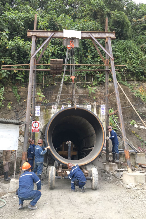 经过一个多月周密细致的安装准备工作后,玻利维亚圣何塞项目部在确保了技术性和安全性的前提下,于当地时间6月7日16:30成功将圣何塞-1隧洞斜井部位首节压力钢管安装到位,业主、监理及EPC总承包方共同见证了此次的成功安装。