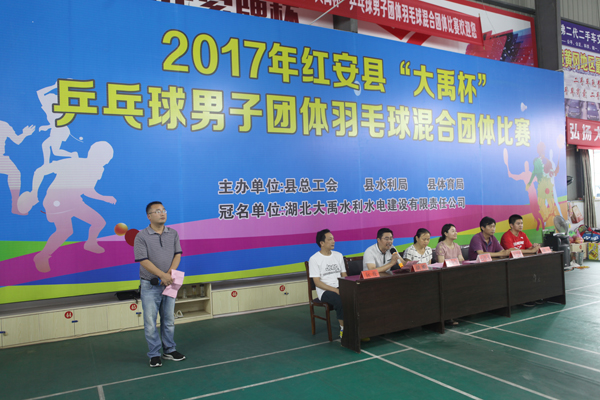 一年好景六月天,良辰盛会喜空前。6月23-25日,由红安县总工会、县水利局、县体育局主办,公司冠名的2017年红安县“伟德国际1946源于英国杯”羽毛球混合团体比赛在革命圣地红安县隆重举行。红安县副县长刘红英出席开幕式并宣布比赛开始,县委宣传部副部长刘应军代表组委会致辞,主办单位负责人参加开幕式,公司监事会主席胡刚参加开幕式并致辞。