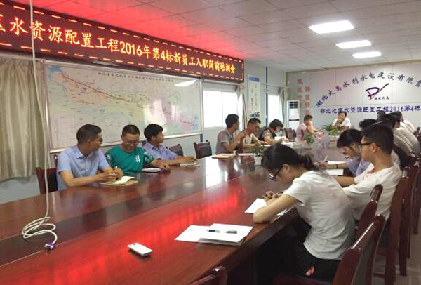 7月24日,鄂北地区水资源配置工程2016年第4标项目部为16名大学生举办了新员工入职岗前培训会。会议由项目负责人主持召开。