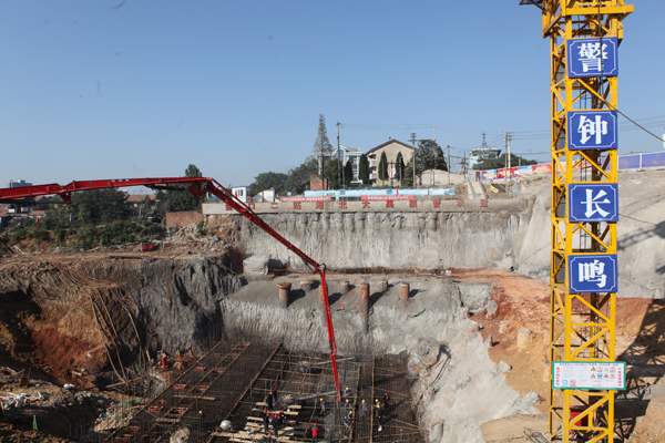 金口二站泵站项目施工现场,天高云淡,秋风送爽,项目部全体员工的脸上洋溢着一派节日的喜悦。8时许,在烟花和爆竹的轰鸣中,整个施工现场为之雷动,迎来了主泵房底板浇筑的重要时间节点,56米的天泵高高扬起,搅拌车早早就位,人员等一切准备工作就绪,开仓、浇筑,随着一个个浇筑、温控参数及时反馈,正常、正常,整个施工现场处在一片繁忙有序当中。