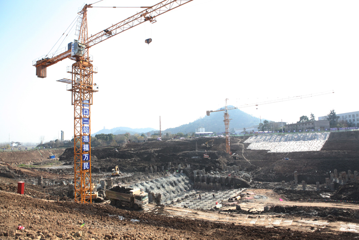冬日里的煦阳照耀着鄂州大地,穿过薛家沟闸,走进樊口二站工程项目部,映入眼帘的是一个巨大的深基坑。基坑两侧的塔式起重机伸着巨臂,提着庞大的钢铁构件等施工材料在空中旋转着;围绕着基坑的道路上一辆接一辆的大卡车转运着挖起的渣土;现场管理人员挥舞着手臂,提着嗓子指挥着工人们进行底板钢筋模板施工;工人们搬的搬、抬的抬,各守其位紧张快干;机器的轰隆声中夹杂着人们的呼喊声,到处呈现热火朝天的赶超景象。