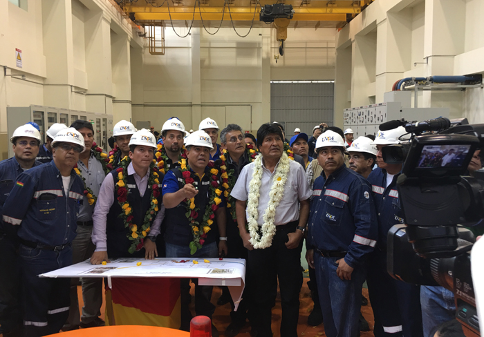 当地时间2018年1月17日上午,圣何塞一级站发电启动仪式举行,标志着圣何塞一级站全面竣工并正式投产发电。玻利维亚总统莫拉莱斯第四次亲临现场,出席投产发电仪式,点赞圣何塞一级站。中国驻玻利维亚大使梁宇、商务参赞王瑞钢随同视察。