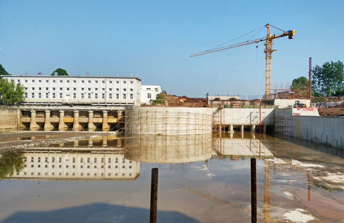5月9-10日余码头二站工程相继完成引水渠冠梁工程和泵房出水流道层大体积混凝土浇筑工程,这两项工程的完成标志着余码头二站工程汛前最重要的两项施工节点:水下全部施工任务和泵房出水流道层完成。余码头二站正式进入水上部分的电机层及泵房施工,为完成主泵房、安装间屋面封顶赢得了时间。