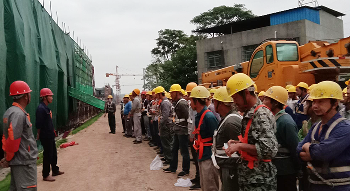 9月25日上午7时,鄂北4标项目部沙河渡槽施工区全体员工按要求佩戴好劳动防护用品后,在项目部门口集合。随后由沙河渡槽施工区安全员对全体员工进行了班前教育。安全员强调劳动保护用品的重要性,列举了现场的隐患、危险源及采取的措施并要求员工格按照安全操作规程进行作业。班前教育提高了全体员工的安全意识,在思想上从“要我安全”转变为“我要安全”。
