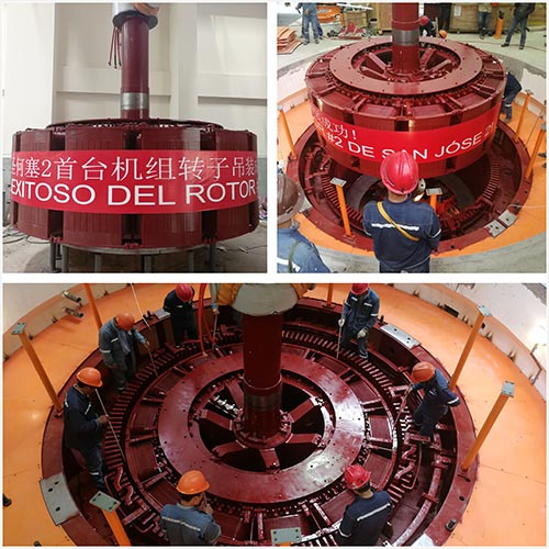 首台机组转子的吊装是机电安装过程中的关键节点,其成功安装不仅让2#机后续的安装工作具备了条件,而且腾出了安装间转子装配机位,使1#机组各项安装工作能够得以展开,机电安装工作效率进一步提升。随着首台机组转子的成功吊装,圣何塞2级站机电安装工作进入最后的攻坚阶段,项目部全体人员将继续全力以赴密切合作,为项目的通水发电作最后的冲刺。