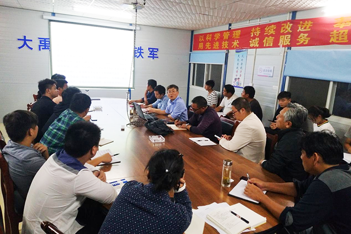 会上,袁建华从混凝土原材料、混凝土施工、混凝土温度控制等三个重要方面的内容进行了讲解。着重讲解了混凝土温度控制,混凝土温度控制应从结构设计、原材料选择、配合比设计、施工安排、施工质量、混凝土温度控制、养护和表面保温等方面采取综合措施,防止混凝土裂缝。同时他与参建各方针对施工中存在的问题进行集中讨论,并提出可行方案。