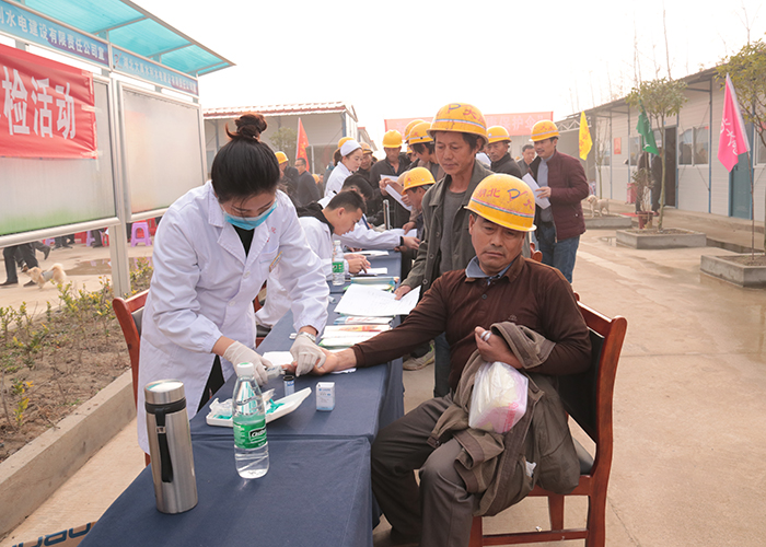早晨8点,内荆河节制闸项目部排满了等待体检的队伍,他们都是来自内荆河节制闸的一线员工,每人手里拿着体检表,有说有笑,等待做检查。“打工这么多年,这是我第一次在工地上做免费体检,感受到了深切的关心和照顾”。能够得到免费的体检,员工小周也感觉心里很温暖。