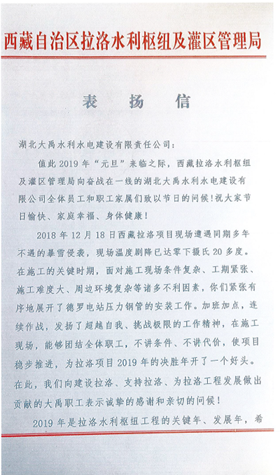 拉管局、监理和第三方检测机构对项目部所取得的成绩感到非常满意,情不由衷地感叹道:“你们真不亏为伟德国际1946源于英国人,水利铁军!为整个西藏拉洛项目的建设做出了巨大的贡献!为你们点赞!”