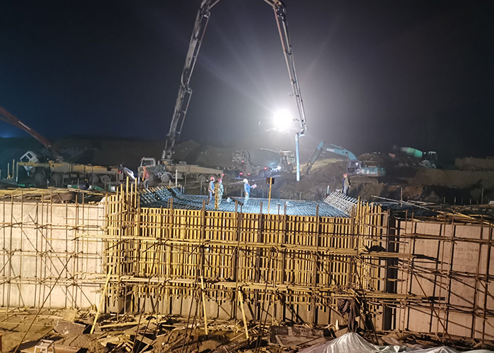 2019年1月21日,经过一天一夜的连续奋战,汉川市大沙二站工程3#出水流道墙身和防洪闸闸室混凝土顺利浇筑,标志着该项目完成了出水建筑物水下结构部分,提前完成春节前节点目标,这是大沙二站项目部又一次重大节点突破。