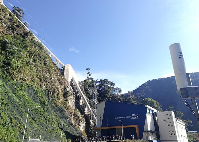 圣何塞二级水电站由公司承建,位于已发电的圣何塞一级水电站下游7公里处,为流域梯级开发的第二座电站,主要包含压力钢管道土建工程、压力钢管制造安装、厂房土建工程、电站金属结构制造安装及机电设备安装工程。电站最大净水头360 m,设计净水头342m,最小净水水头332m,设计引水量23m3/s, 2台机组总装容量69MW,年发电量为407GWH。电站于2017年7月15日正式开工,2018年12月中旬提前具备通水调试条件,2019年4月9日正式进入商业运行。圣何塞工程的成功建设展现了公司强劲的工程技术实力,在玻利维亚乃至整个南美洲树立和巩固了中国公司的正面形象,对中玻关系的持续深入发展起到了积极意义,为国家“一带一路”战略的顺利实施贡献了力量。