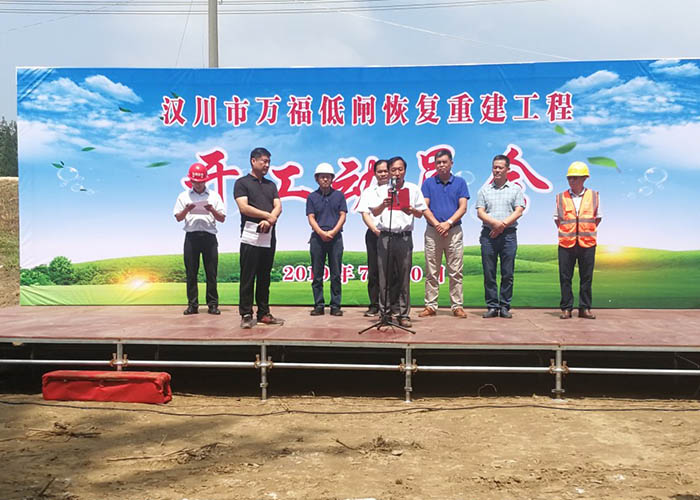 7月10日上午,汉川市万福低闸重建工程开展以“创高效工程、优质工程、平安工程,百年功业,我们重任在肩”为中心的项目开工动员会,汉川市水利局局长陈斌、沉湖镇镇长及各参建单位负责人参加。