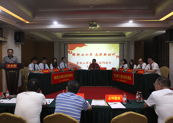 为庆祝建国70周年,加强洪湖东分块地区施工单位的交流,8月22日,公司组织参加洪工局举办的以“辉煌七十年,奋进新时代”为主题的辩论赛。省洪工局在荆单位、洪湖分局、监利分局、三闸管理分局,东分块项目法人机构及东分块各参建单位共8支代表队参加辩论赛,洪工局领导观摩并对辩论赛进行点评。