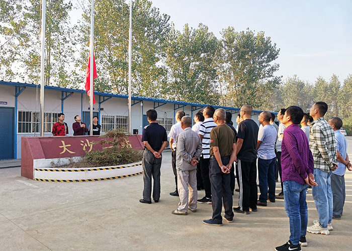 2019年9月30日北京时间7时36分,为隆重庆祝新中国成立70周年,汉川市大沙二站工程施工项目部在项目部盛大举行升旗仪式。建管办、监理处、项目总承包以及设计单位共20余人参加升旗仪式。在场的每一个人向国旗行注目礼,伴随着庄严的《中华人民共和国国歌》歌声,五星红旗冉冉升起,迎风飘扬,深怀着对祖国无限的热爱和崇高的敬意。
