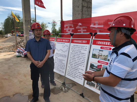 省水利厅调研督办水利涉湖补短板工程检查,公司中标承建的斧头湖流域湖堤加固(嘉鱼部分)第3标段工程也在本次检查督办的行列当中。9月24日上午,省湖泊局专职副局长熊春茂、省水利厅湖泊处调研员马光辉、省湖泊处科长李进、咸宁市水利和湖泊局副局长肖唐国、嘉鱼县水利和湖泊局局长李新方及项目法人一行检查了斧头湖六贯闸拆除重建工程。