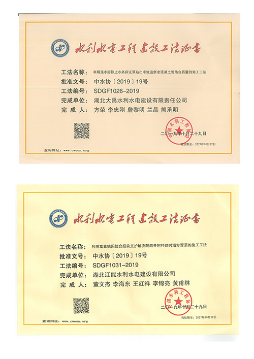 10月29日,中国水利工程协会发布《关于公布2019年度水利行业工法的通知》(中水协[2019]19号),其中公司申报的《利用遇水膨胀止水条保证泵站出水流道新老混凝土管结合质量的施工工法》《利用垂直锚固结合超前支护解决隧洞开挖衬砌时塌方冒顶的施工工法》被评为2019年度水利行业工法并颁发了水利水电工程建设工法证书,这是公司连续多年荣获水利行业工法。