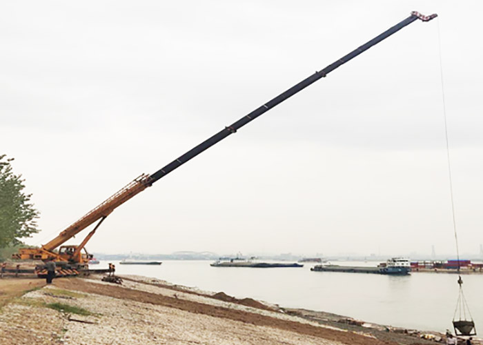 目前,历时4个月的汛期已结束,长江观音洲段水位已经降至施工高程,全线2km长的新护段已经全部开工,施工现场各类机械均已到位。