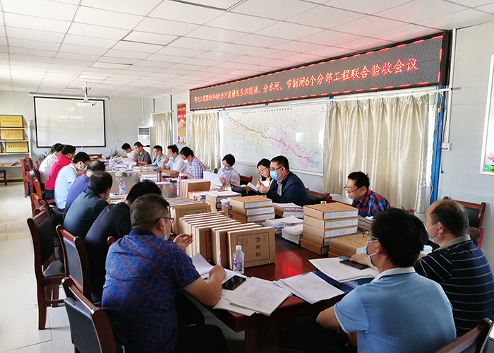 本次验收的六个分部工程分别为:沙河渡槽基础工程、沙河渡槽支撑结构、东郊(梁庄)暗涵Ⅰ工程、东郊(梁庄)暗涵Ⅵ工程、东郊分水闸、东郊节制闸。验收工作组分别前往六个工程现场,实地查看各分部工程的完成情况和工程质量,并进行了复核。随后,在鄂北4标项目部会议室召开验收工作会议。验收工作组听取了参建单位汇报,查阅了档案资料,讨论并通过了验收鉴定书,并由质量监督单位通报了验收监督情况。