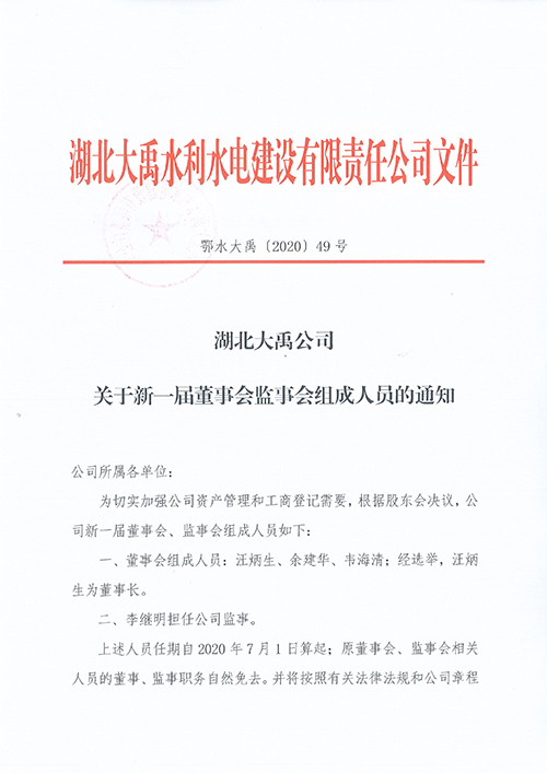 湖北伟德国际1946源于英国公司关于新一届董事会监事会组成人员的通知