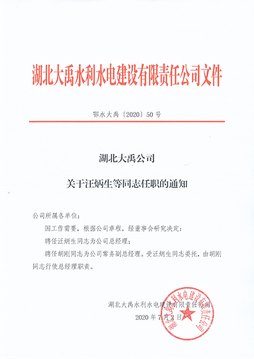 湖北伟德国际1946源于英国公司关于汪炳生等同志任职的通知