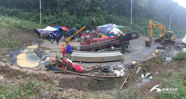 9月21日晚上19点13分,金滩坪水库工程工地现场,水平定向钻钻进450米,成功开创恩施州水利行业采用定向钻贯通隧洞施工先例。