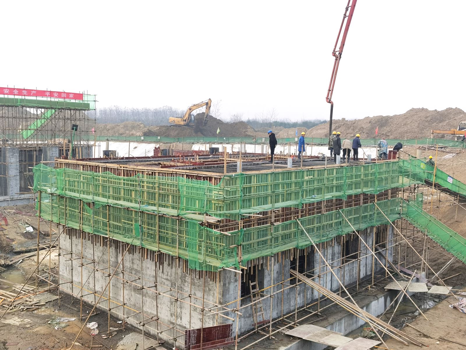 12月28日17时30分,随着混凝土输送泵停止浇筑的鸣笛声响起,龙头泵房墩墙混凝土顺利浇筑封顶完成,标志着龙头泵站主体结构均已进入施工高峰期,各主要施工作业面全面展开。