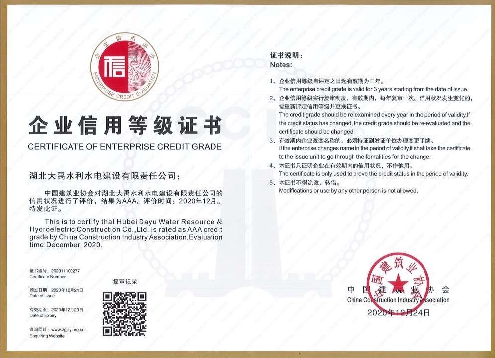 2020年12月24日,中国建筑业协会发布建协【2020】50号文“关于公布2020年度建筑业AAA级信用企业的通知”,公司荣获2020年度建筑业AAA级信用企业。公司长期注重社会信用建设,倡导企业诚信守约,努力营造诚信为本、操守为重的良好氛围,维护了守信用、重合同的良好企业形象,实现了经济效益和社会信誉的双赢。 今后公司将一如既往的维护好自身的各项荣誉,继续以诚信经营为本, 为营造健康诚信的社会氛围贡献自己的力量。