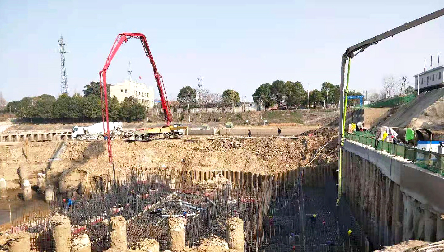 挖沟泵站泵房为堤后整体块基型结构,主泵房底板混凝土共1100m³,混凝土设计指标分别C25、P8、F100。
