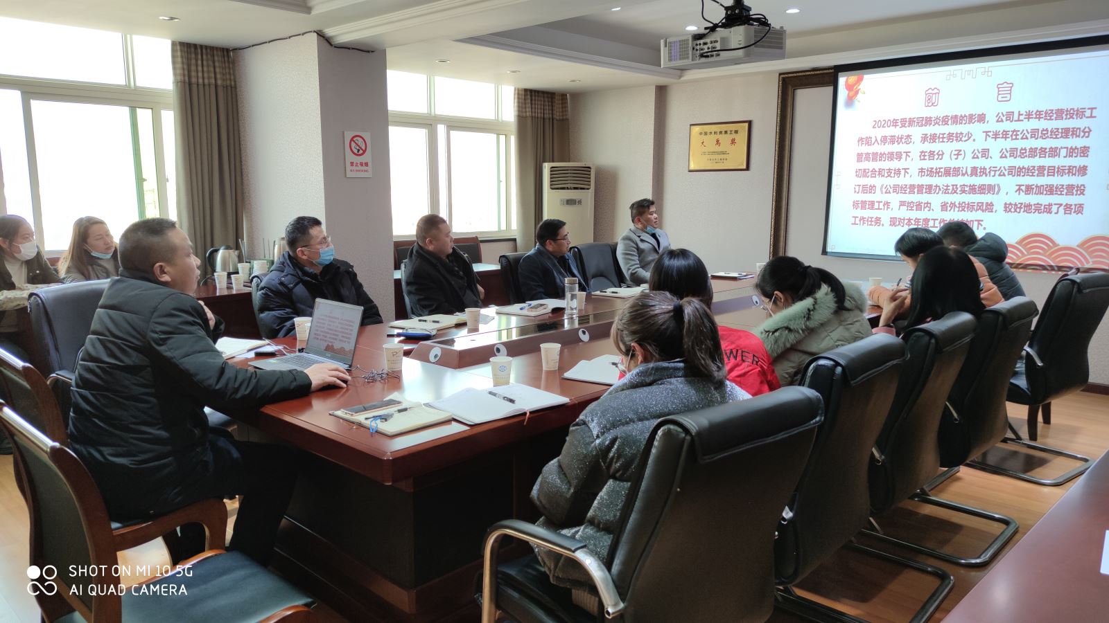 1月19日下午,市场拓展部在公司九楼会议室召开了2020年度年终总结汇报会,公司总经理胡刚、副总经理余建华出席会议,市场拓展部全体员工参加会议。