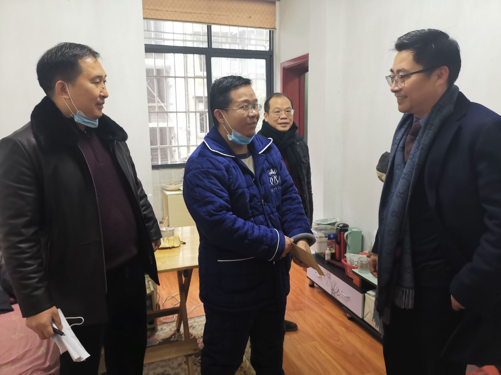 胡刚一行亲切慰问了困难员工郑习明的生活和身体情况,送上了困难帮扶基金,叮嘱家属出院后可在东西湖区医疗互助中心办理领取医疗互助金,并向他们传达了新春的祝福,鼓励他们坚定生活的信心,勇敢面对困难,要注意冬日保暖,过一个愉快、祥和的春节。