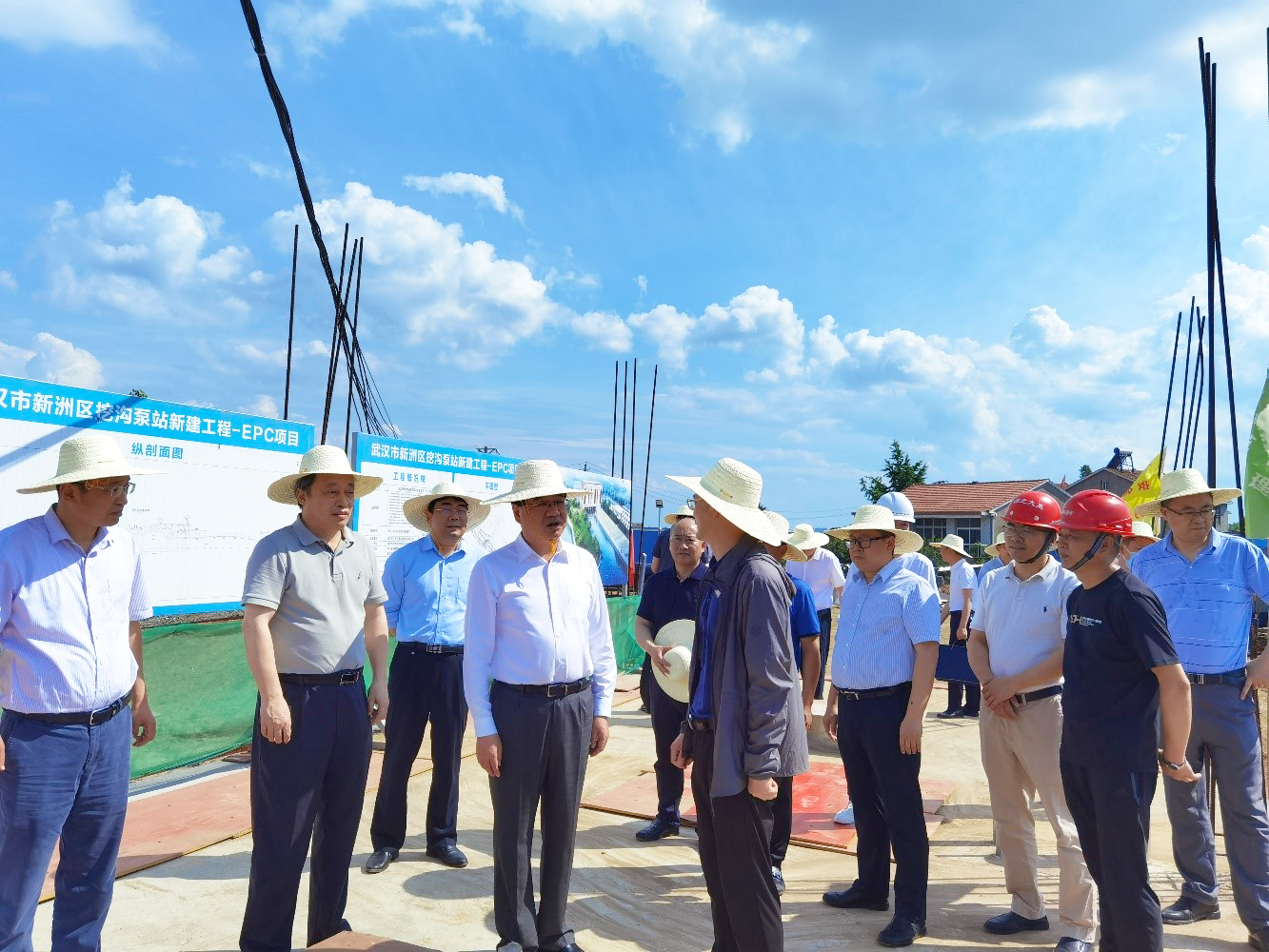 2021年6月15日16:00时,湖北省副省长柯俊莅临武汉市新洲区挖沟泵站新建工程-EPC项目检查并指导工作。省水利厅厅长周汉奎、武汉市水务局局长周耕、新洲区区委书记赵利洪、区政府副区长罗新坤、区水务局局长王艳东陪同,公司总经理胡刚、总经理助理罗应军陪同检查。