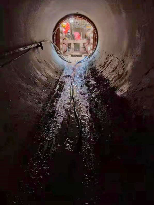 8月14日,顶进遇到不良地质情况,出现了松散石渣层且渗水,少量塌方。建设、设计及监理单位一起现场分析、研究,并向当地居民了解情况。根本原因为当前地层是老鱼塘回填石渣,地层松散,且近期雨水较多,所以出现渗水情况。为此,项目部召集现场施工员、测量员、安全员及班组长开会,通报当前地层情况和参建各方的一致意见,要求施工现场加强观察及监测,在保证人员和设备安全的前提下缓慢顶进,出现特殊情况及时汇报。经过大家的不懈努力,8月20日,102m球墨铸铁管的顶管施工顺利完成。