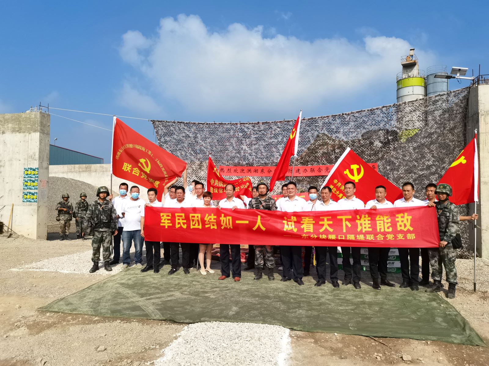 湖北伟德国际1946源于英国洪湖隔堤3标支部联合东分块党总支与堤防建办支部慰问舟桥旅部队驻训官兵
