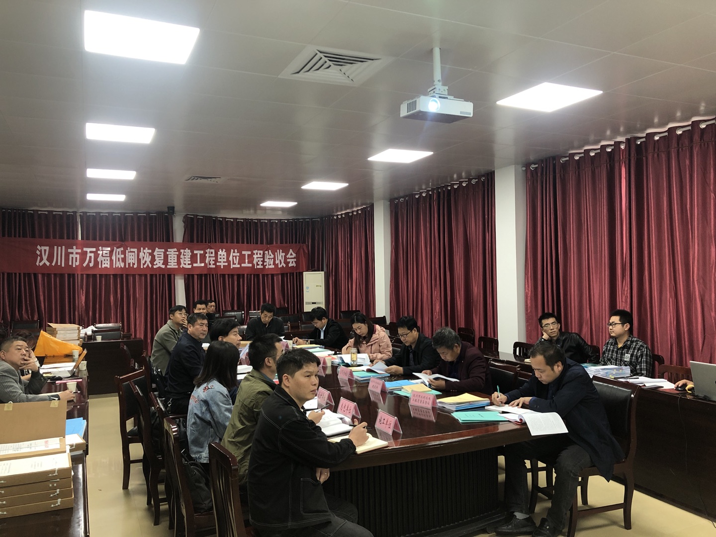 验收工作组于上午10点抵达现场,听取了施工单位对整个施工过程的汇报,对项目主体工程建设的外观、质量进行了察看并给予了好评。下午2点在市水利和湖泊局召开单位工程验收会,验收会上,验收工作组听取了各参建单位的工作报告,查阅了相关工程档案资料,审议了汉川市万福低闸恢复重建工程单位工程验收鉴定书。
