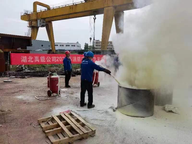 最后,大家还体验了现场灭火,面对熊熊火势,大家沉着冷静,按照安全员讲解的灭火步骤和方法,迅速灭火,演练取得了良好的效果。