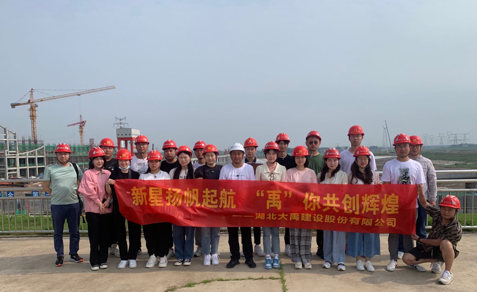 一夜休整后,11号早晨,大家整装待发,驱车前往碾盘山水利水电枢纽工程进行参观学习及交流座谈。项目部负责人为大家准备了安全帽、纸笔,并带领大家实地参观碾盘山水利水电枢纽工程,沿路讲解了每一板块的施工状况及功能用途。随后,项目部负责人邀请项目部技术骨干们与新员工们在项目部会议室展展开了交流座谈。会上,项目负责人李新源对新员工们的到来致以欢迎,并分享了自身感悟,鼓励大家不畏困难,敢于拼搏;明确人生目标,树立终身学习信念,不断学习专业知识;培养良好的沟通协调能力,以团队合作模式共谋发展,努力实现与公司同成长共进步。新员工们也在轻松愉悦的氛围里积极发言,进行了简要的自我介绍,围绕近期工作情况,畅谈了自己对本职工作的认识、对个人发展的设想,同时也抒发了对前辈们立足岗位、不畏艰辛、吃苦耐劳精神的敬佩。最后在李新源的带领下,新员工一齐宣誓“我们一起向未来,伟德国际1946源于英国因我更精彩”。