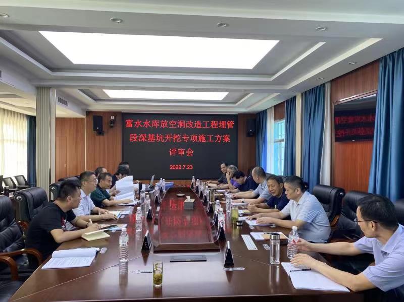 7月23日,富水水库放空隧洞改造工程项目部在富水水库防汛楼会议室就出口埋管段深基坑土方开挖专项方案召开专家评审会。来自武汉大学、省水利水电科学研究院、湖北省水利水电职业技术学院等单位的专家代表组成评审组列席本次评审会。公司副总经理曾广然、总工程师石裕友参会。