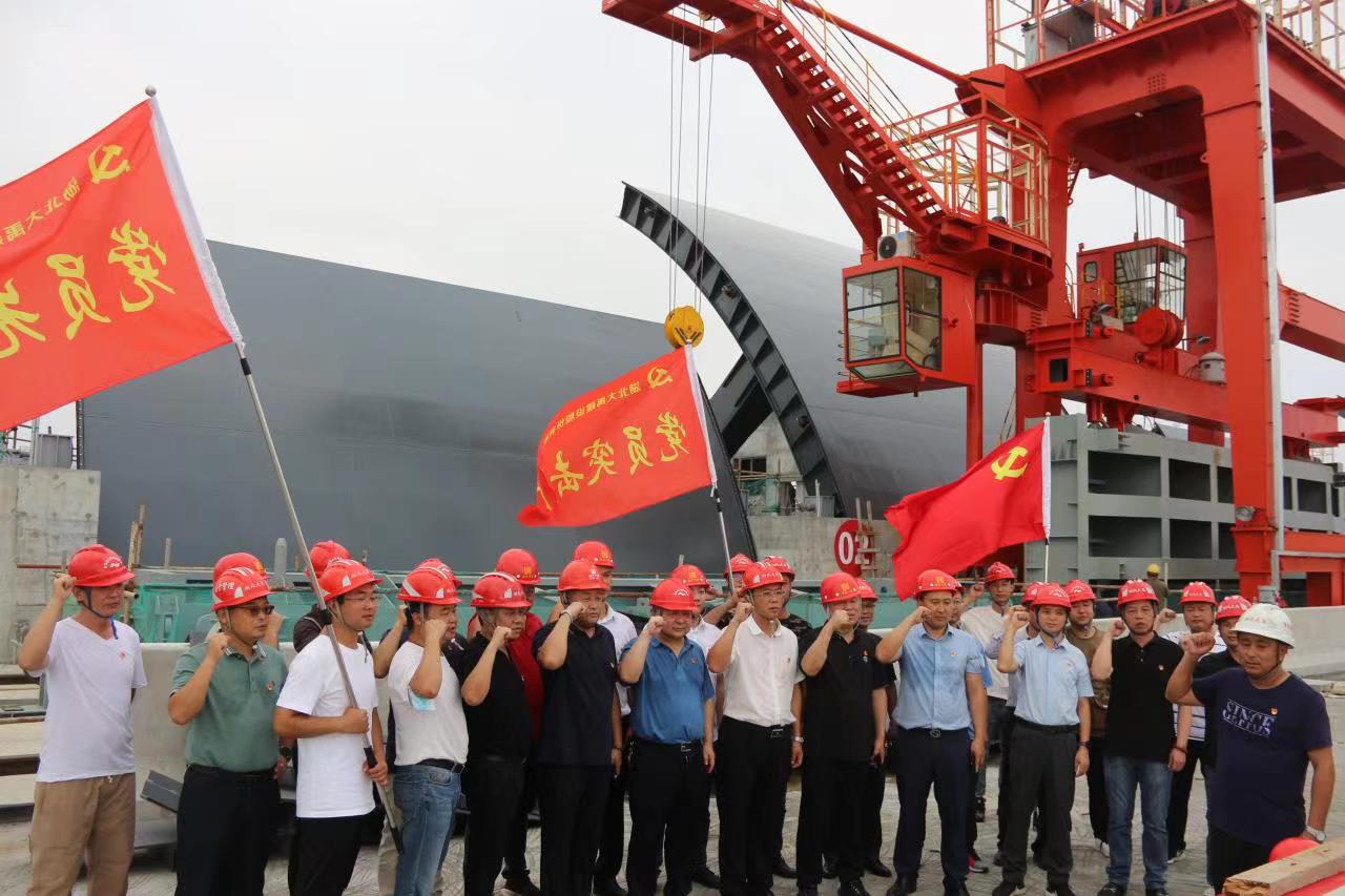 随后,与会党员奔赴现场一行参观了泄水闸工程项目,在施工现场由周运奎同志带领全体党员同志、入党积极分子和公司优秀青年再一次举起右手,宣读入党誓词,激励大家不忘党员身份、不忘初心使命,继续前行。
