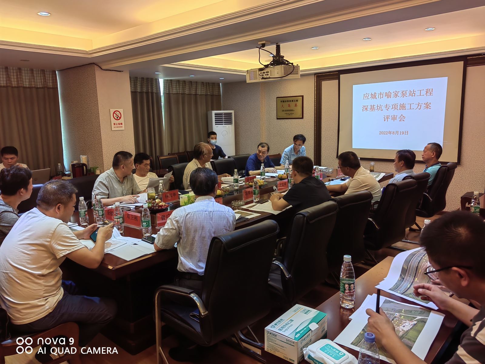 方案评审会期间,评审组查看了施工现场现状照片,听取了项目负责人对《应城市喻家泵站深基坑专项施工方案》的汇报,认真审查了相关技术资料。在随后的评审会上,与会专家与参建各方代表就方案的可行性展开讨论,最终形成评审组评审意见。评审组认为施工方案完整、可行,施工的基本条件符合现场实际,并就基坑井点降水计算和井点的运行保障措施提出宝贵意见。