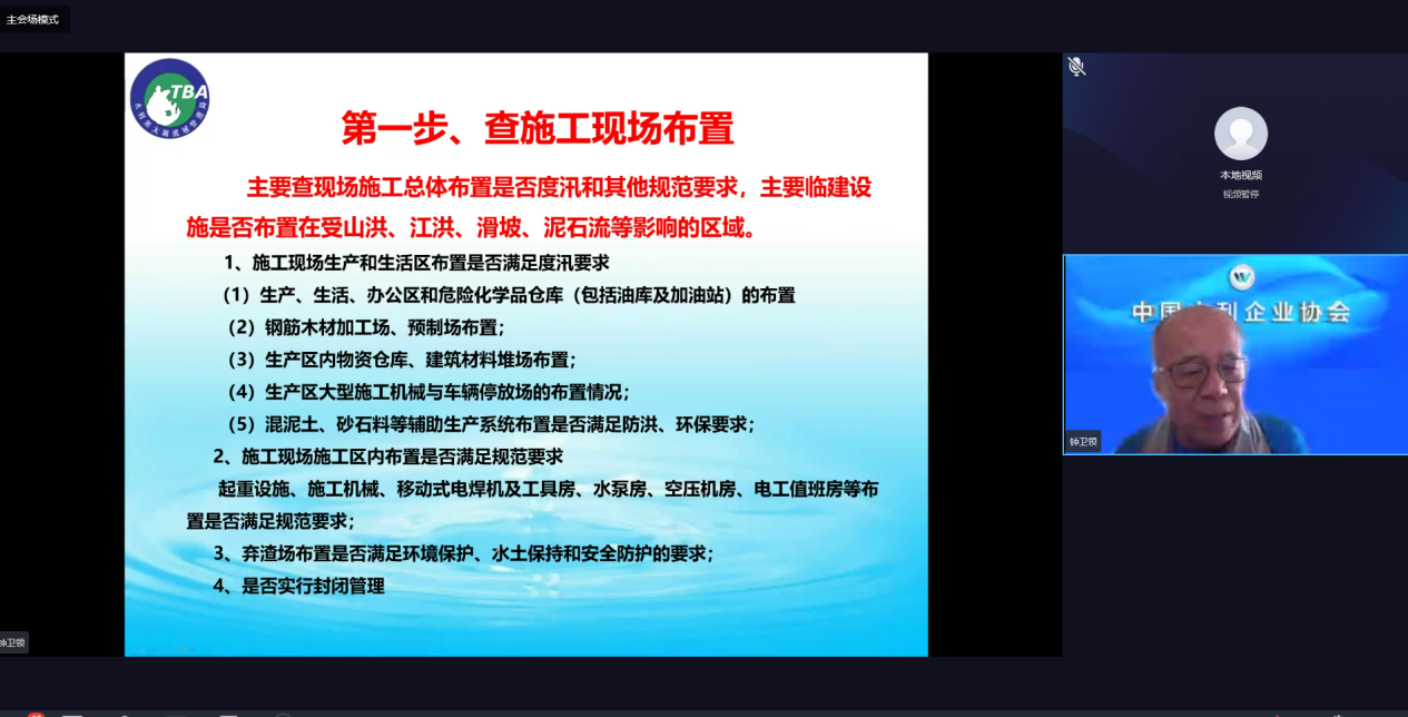 本次培训由中国水利企业协会主持,会议主要对《安全生产法》关于全员安全生产责任制落实、主要负责人安全职责及其企业主体责任等重点内容进行解析,除此之外,中国水利企业协会钟卫领教授还讲解了水利水电施工单位安全生产双重预防机制建设,介绍了双重预防机制建设流程及核心要求,体系建立中容易出现的问题及解决思路。通过对典型案例分析,解析了水利工程生产安全重大事故隐患清单指南解析(2021年版)。会后,水利工程企业协会对安全生产标准化体系建设要点及实施运行过程中常见问题进行解答。
