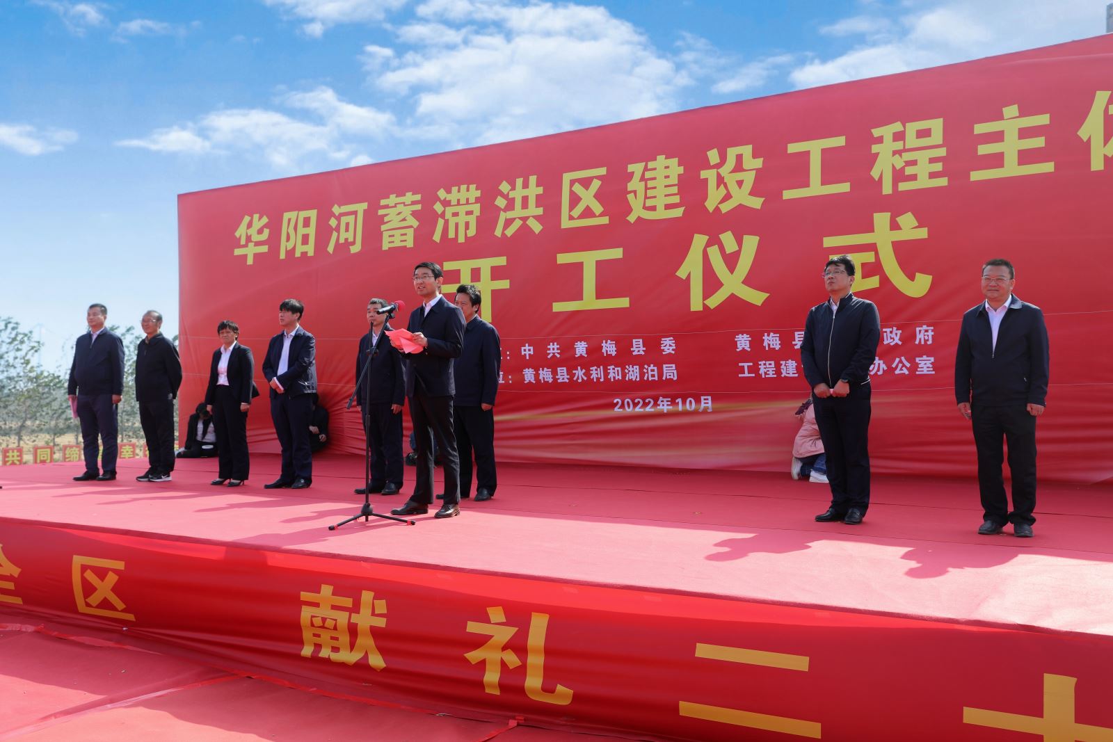 10月23日上午,公司承建的华阳河蓄滞洪区(湖北部分)主体工程开工仪式在黄梅县刘佐乡盛大举行。黄冈市副市长马艳舟宣布工程正式开工,黄梅县县委书记刘欲晓等相关领导出席开工仪式并致辞,县委副书记、县长马梁主持开工仪式。公司董事长汪炳生作为参建单位代表参加仪式并表态发言。