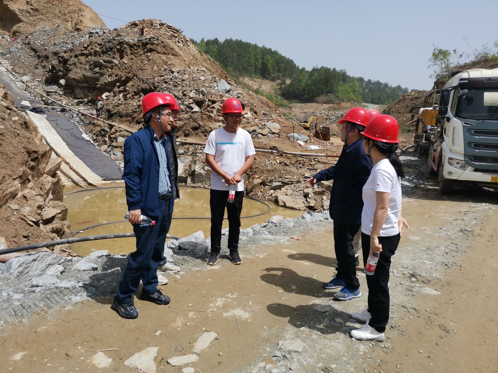 4月15日,公司副总经理杜美容率成本管理部人员赴麻城市小玉潭水库项目参观学习,现场勘察并听取项目负责人作施工过程及成本控制情况汇报。